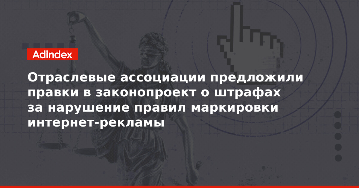 Отраслевые организации предлагают изменить подход к формированию штрафов иответственности за нарушение правил маркировки. Авторы письма подчеркивают, чтоподдерживают необходимость создания единой системы контроля соблюдениятребований по маркировке интернет-рекламы, при этом законопроект «требуетсущественной доработки».