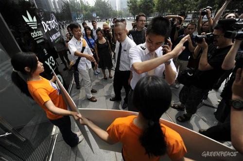 Сегодня в Пекине активисты Greenpeace развернули баннеры 'Detox' ('Не будь токсичным') - у входов в крупнейшие пекинские магазины Adidas и Nike, призвав производителей спортивной одежды не использовать ядовитые химические вещества при производстве продукции. Эта акция родилась в результате годичных исследований Greenpeace по загрязнению рек в Китае токсичными веществами.