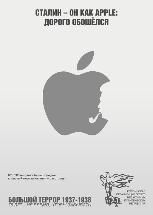 На плакатах Иосиф Сталин сравнивается с различнымиинтернет-ресурсами. Так, на них сообщается, что Сталин 'отправлял поисковыезапросы', как 'Яндекс', 'призывал делиться информацией', как Facebook, 'какTwitter - был краток', 'позволял загружать и отправлять', как YouTube, иподобно 'ВКонтакте' 'пленил миллионы'. Сравнивается 'отец народов' и скомпанией Apple - по мнению создателей плакатов, он так же 'дорого обошелся'людям.