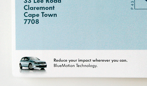 Вместо того, чтобы рекламировать экологически чистый VW BlueMotion обычным способом, изводя при этом тонны бумаги и других материалов на наружную или печатную рекламу, они придумали простой и эффективный ход. В толстых глянцевых журналах появились небольшие вкладки, представляющие собой почтовые наклейки. Прочитав журнал, можно наклеить вкладку и просто опустить ставшее ненужным издание в почтовый ящик, и оно прямиком попадет в пункт сбора макулатуры, а затем на переработку. Минимум затрат сил, материалов и усилий читателей – и получилась эффективная экологическая акция. Конечно, реклама VW BlueMotion на наклейках все-таки присутствует. Но весьма сдержанная.