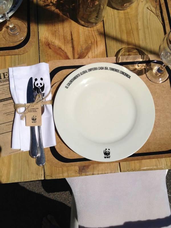 На специальной посуде WWF, которую раздали посетителям, было написано: «Глобальное потепление. Ситуация ухудшается с каждым днем. Пора осознать проблему».