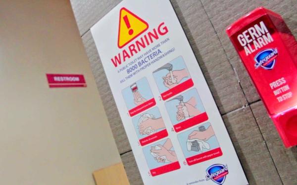 Вооружившись этой информацией и различными исследованиями, Safeguard соорудила «микробную сигнализацию», громкую и привлекающую внимание, и установила ее в филиппинских общественных туалетах.