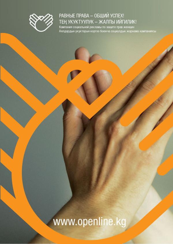 Образ кампании – две ладони, соединяющиеся в хлопке, – отсылает к кыргызской пословице «Для хлопка нужны две руки» и символизирует возможность достижения общего результата при равном участии как мужчин, так и женщин. Кампания разработана участниками креативного шестидневного семинара под руководством креативного директора АНО «Лаборатория социальной рекламы» Георгия Молодцова по заказу общественного фонда «Открытая Линия». Участники – представители производственных компаний Бишкека, молодые режиссеры и представители Кыргызского телеканала КТРК.