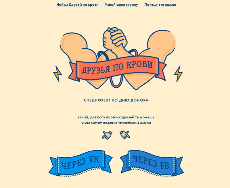 Многие не заинтересованы сдавать кровь ради незнакомцев, но что, если такая необходимость появится у близких людей — наших друзей? В Look At Media создали проект, в рамках которого пользователи двух самых популярных социальных сетей могут найти своих друзей по крови — людей с идентичной или подходящей группой. Всё, что нужно для этого сделать, — авторизоваться через Facebook или «ВКонтакте», указать номер своего телефона и группу крови. Имена потенциальных доноров и реципиентов на всякий случай можно сохранить в отдельный список контактов в своём смартфоне.