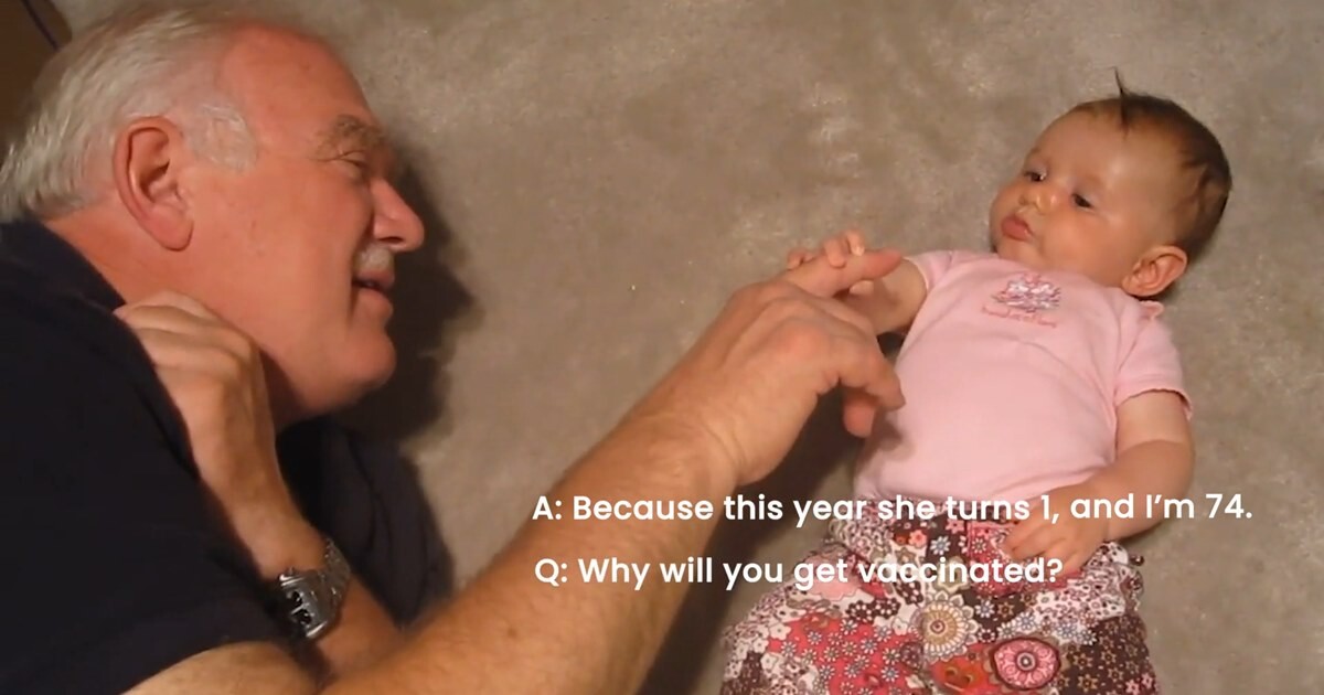 Pfizer совместно с рядом ассоциаций здравоохранения запустила кампанию вподдержку разработанной ею вакцины BioNtech. Рекламное агентство Mischief@NoFixed Address реализовало простую идею — в серии коротких роликов креаторыответили на вопрос «Почему вам надо вакцинироваться?» Потому что экран обнятьнельзя, а друга можно. Потому что внучке исполнился годик. Потому что радостныеновости лучше сообщать лично.